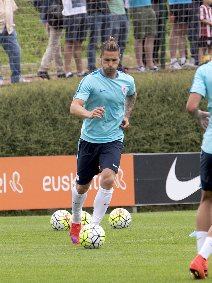 El delantero navarro, más fuera que dentro del Athletic, lució nuevo look en el regreso de los rojiblancos a los entrenamientos.