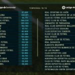 11,1 millones de euros es el tope salarial aprobado por la la LFP para el Club Atlético Osasuna para la campaña 2018/19. El Málaga es el club que más podrá gastar con un límite fijado en 25,2 millones y el Reus, reciente verdugo de Copa de Osasuna, el que que menos con 3,1 millones.